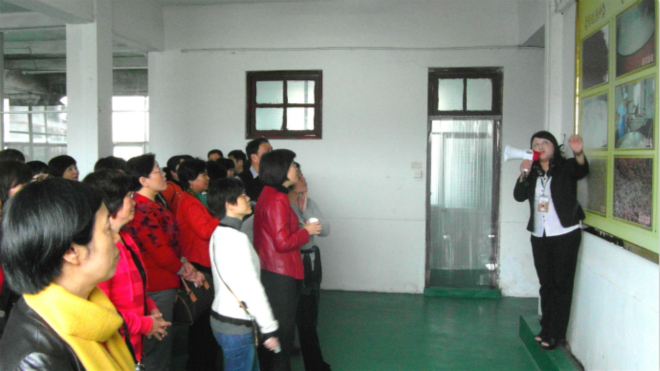 在講解員的引導(dǎo)下梁主席一行人來到了我們的窖藏車間,感受了迎面撲來的濃濃的醋香以及醋窖的規(guī)模。窖藏車間作為永春老醋省工業(yè)旅游示范基地的一部分,已越來越受到外界的關(guān)注,很多同行和游客都慕名前來參觀。在說到培養(yǎng)醋酸酵母就像培養(yǎng)自己的孩子一樣的時候,經(jīng)常在基層慰問和關(guān)懷婦女同胞的梁主席及一眾婦聯(lián)代表對此深有體會和了解,我們的婦女同胞就是這樣一群任勞任怨、無私奉獻的偉大母親。所以重視婦女身心健康、保護婦女權(quán)益、推動婦女同胞精神文明建設(shè)及家庭角色的提升顯得尤為重要和迫切。梁主席在贊賞了這一優(yōu)良的傳統(tǒng)釀造工藝的同時更是認(rèn)可了我們釀造老醋的這份用心,從而對我公司在處理婦女員工工作面貌、福利保障及家庭生活關(guān)懷上寄予了充分的信任。說明了我公司是一個關(guān)心婦女員工身心發(fā)展的這樣一個負(fù)責(zé)任和充滿人文關(guān)懷的企業(yè)。.jpg)