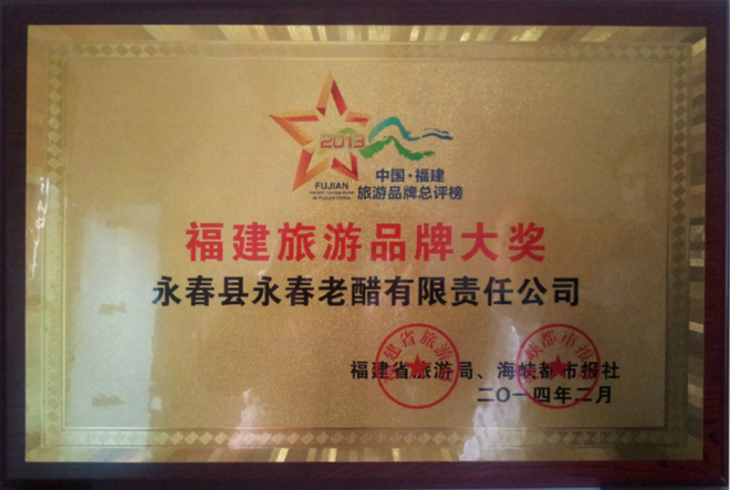 永春老醋公司榮獲“2013中國(guó)(福建)旅游總評(píng)榜“旅游品牌大獎(jiǎng)”