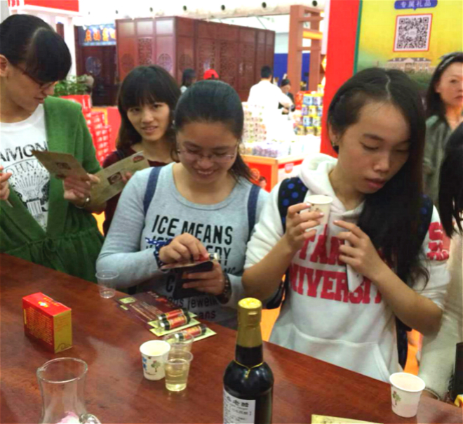 隨著時(shí)間的推進(jìn)展會(huì)迎來(lái)了一波波的游客和采購(gòu)商,永春老醋公司展區(qū)也隨著涌入的人群熱鬧了起來(lái)。游客們一邊聽著講解人員介紹永春老醋一邊品嘗用老醋調(diào)制的醋飲料,在贊不絕口中加深了對(duì)老醋的了解和認(rèn)可,并現(xiàn)場(chǎng)購(gòu)買了老醋產(chǎn)品。(下圖為游客品嘗老醋調(diào)制的醋飲料以及現(xiàn)場(chǎng)購(gòu)買情況)