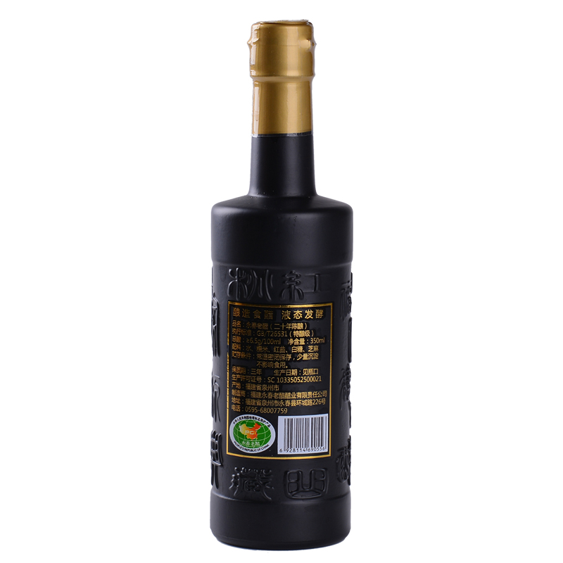 選用優(yōu)質(zhì)糯米、紅曲、芝麻、原產(chǎn)地水源等為原料,傳承千年獨(dú)特釀造工藝(液態(tài)深層發(fā)酵),純糧釀造;在半地下室的窖藏車間里,按照古法釀造工藝,純手工制醋,經(jīng)年累月,邊發(fā)酵邊陳釀,平均陳釀時間十年起,酸度6.5左右。故產(chǎn)出的老醋香味醇厚,濃酸微甜,零添加劑,回味悠長,是永春老醋中的精品。采用精美的禮盒包裝,適合送禮親朋,有禮有面!